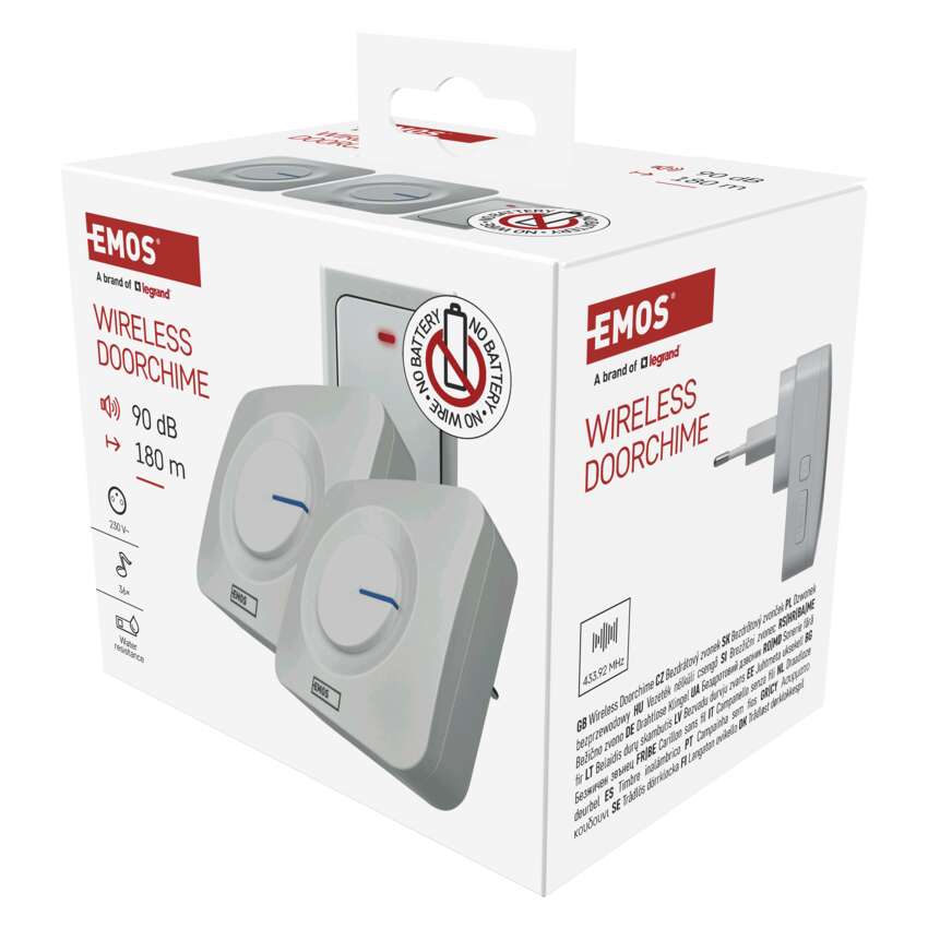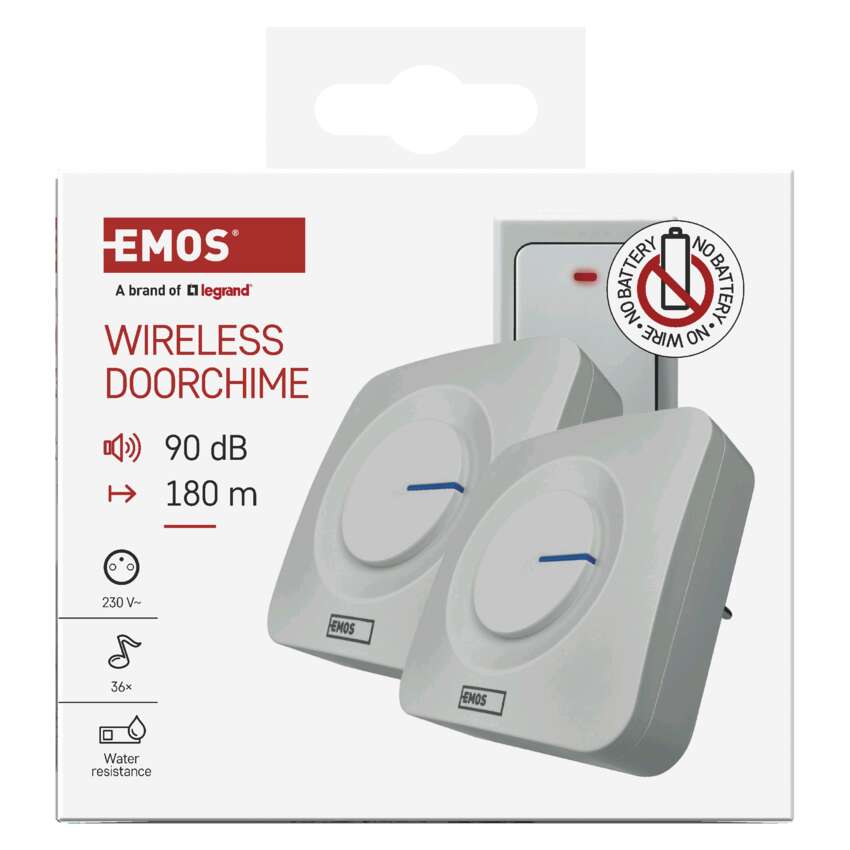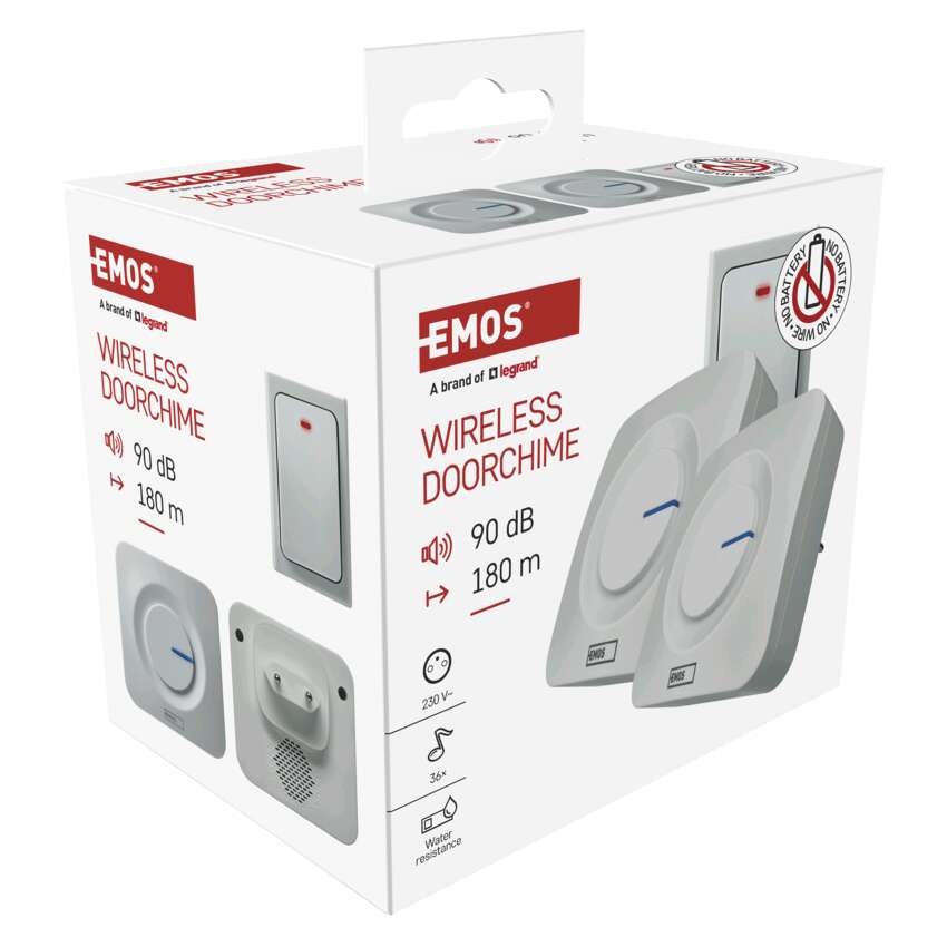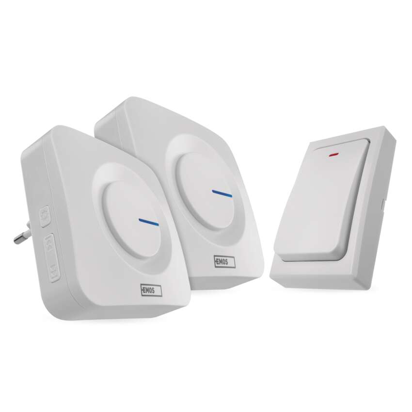 Mūsdienīgajam EMOS durvju zvanam elegantā baltā krāsā ir noapaļotas formas, un, lai signalizētu par tā nevainojamo darbību, pasaulē spīd divas LED. LED uz pogas ir sarkana, bet LED uz durvju zvana ir zila. Abas komplekta daļas pēc tam sazinās savā starpā, izmantojot 433,92 MHz radio viļņus.