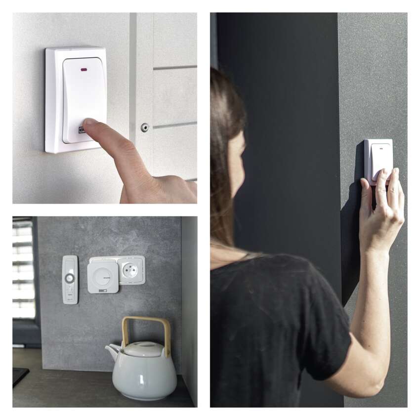 Vairs nav jāvelk vadi un jāurbj sienas. Iespraudiet durvju zvanu izvēlētajā mājas kontaktligzdā un pēc savienojuma izveidošanas ievietojiet pogu tieši tur, kur tā nepieciešama, izmantojot komplektā pievienoto divpusējo līmlenti. Tādējādi viss ir gatavs un darbojas tikai piecu minūšu laikā. Ūdensizturīgā poga un durvju zvans sazinās savā starpā attālumā līdz 180 metriem.