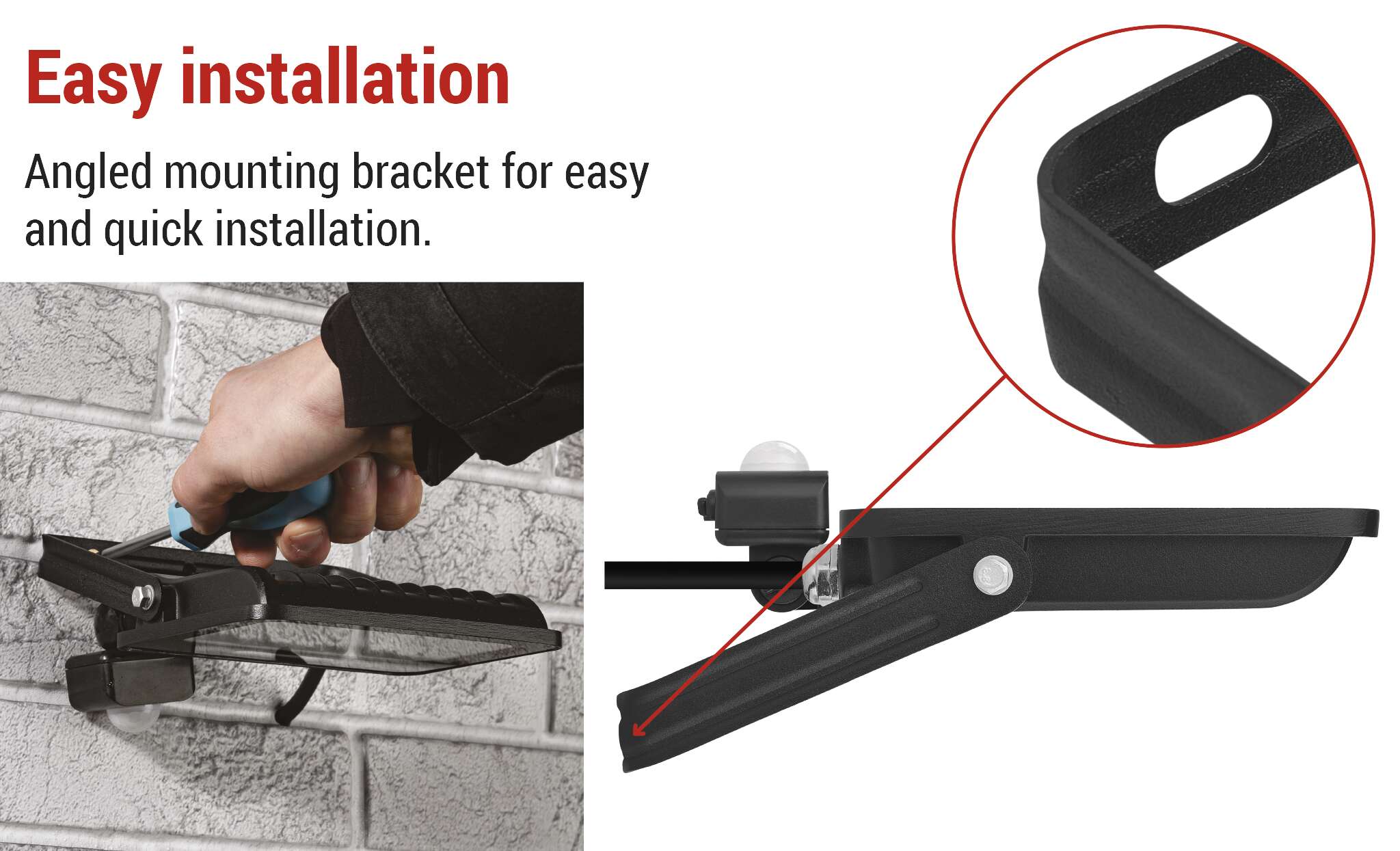 Glaro PIR atstarotāji ir izstrādāti ar praktisku leņķveida montāžas kronšteinu, kas ļauj ātri un ērti uzstādīt uz sienas, fasādes vai cita pamata. Pateicoties iespējai regulēt apgaismojuma leņķi tieši tā, kā nepieciešams, jūs varat novirzīt gaismu tur, kur tā visvairāk nepieciešama, bez sarežģītas urbšanas vai regulēšanas. Viegla uzstādīšana ietaupa laiku un pūles un padara GLARO par ideālu izvēli mājas instalācijām.