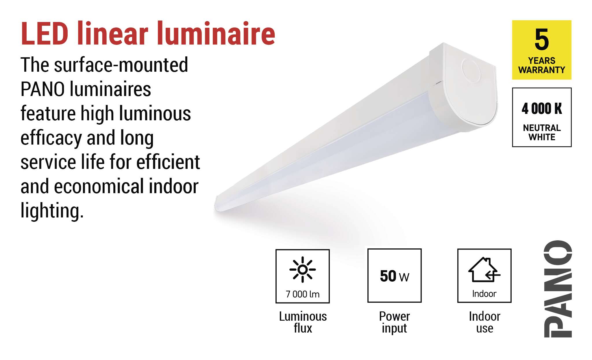 PANO lineārie gaismekļi ir izstrādāti, lai nodrošinātu uzticamu un vienmērīgu apgaismojumu, kas veicina produktivitāti un komfortu. Mūsdienīgais dizains viegli integrējas interjerā, un kvalitatīvu materiālu apvienojums ar precīzu inženiertehnisko risinājumu nodrošina ilgu kalpošanas laiku un bezrūpīgu darbību.