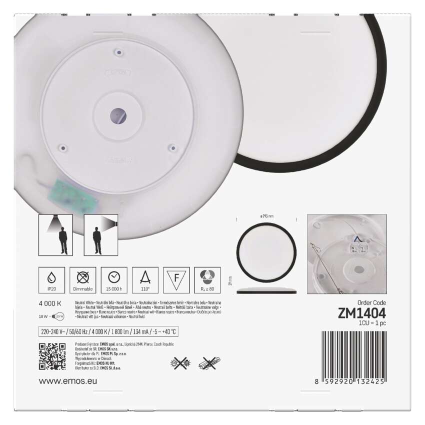 LED gaismeklis FLORI apaļš, melnā, 18W, neitrāli balts