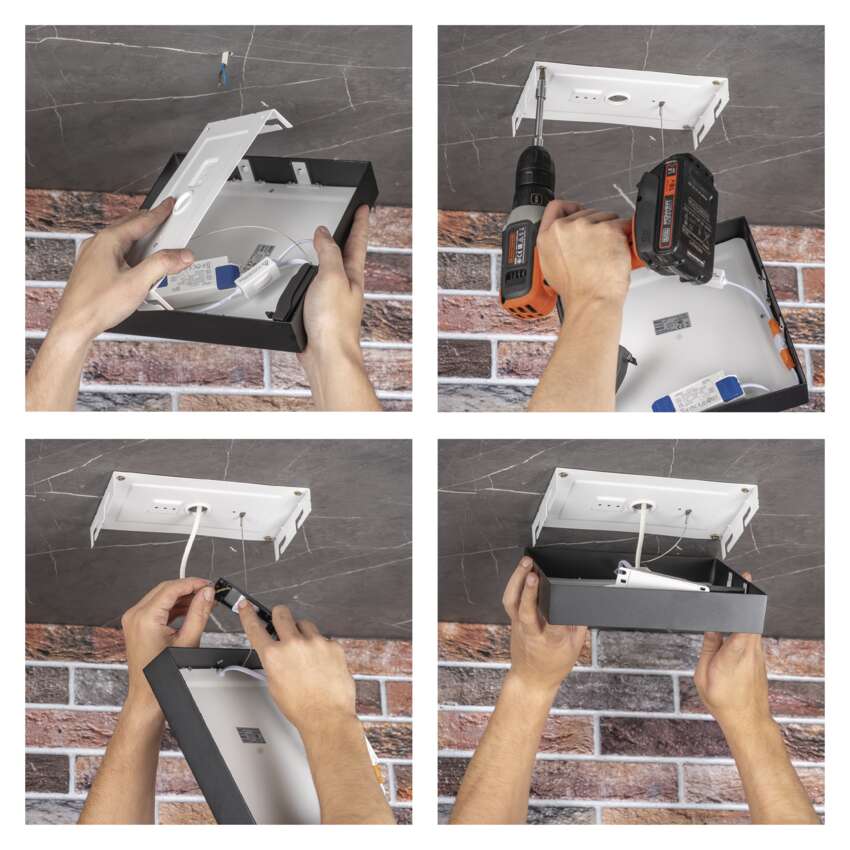 NEKSO LED gaismekļi ir pieejami vairākās versijās. Jūs varat izvēlēties kvadrātveida vai apaļus gaismekļus baltā, melnā vai griezta niķeļa krāsā. Gaismekļa rāmis ir piestiprināts pie griestiem ar montāžas kronšteinu, kas nodrošina gludu, bezskrūvju izskatu.
