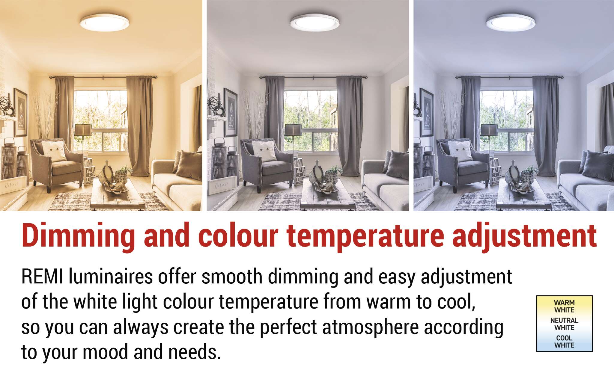 REMI gaismekļiem ir 3 gadu garantija, kas sniedz pārliecību un mieru ikdienas lietošanai. Katra gaismekļa detaļa ir izstrādāta, lai nodrošinātu ilgstošu izturību un uzticamu darbību, tāpēc jūs varat koncentrēties tikai uz patīkamu un efektīvu interjera apgaismojumu. Garantija attiecas uz visām galvenajām gaismekļu funkcijām, tostarp gaismas temperatūras regulēšanu, gaismas temperatūras maiņu un tālvadības pulti, un apstiprina REMI augstākās klases gaismekļu kvalitāti.