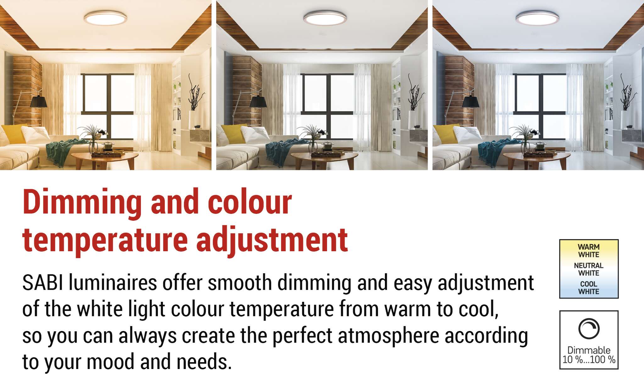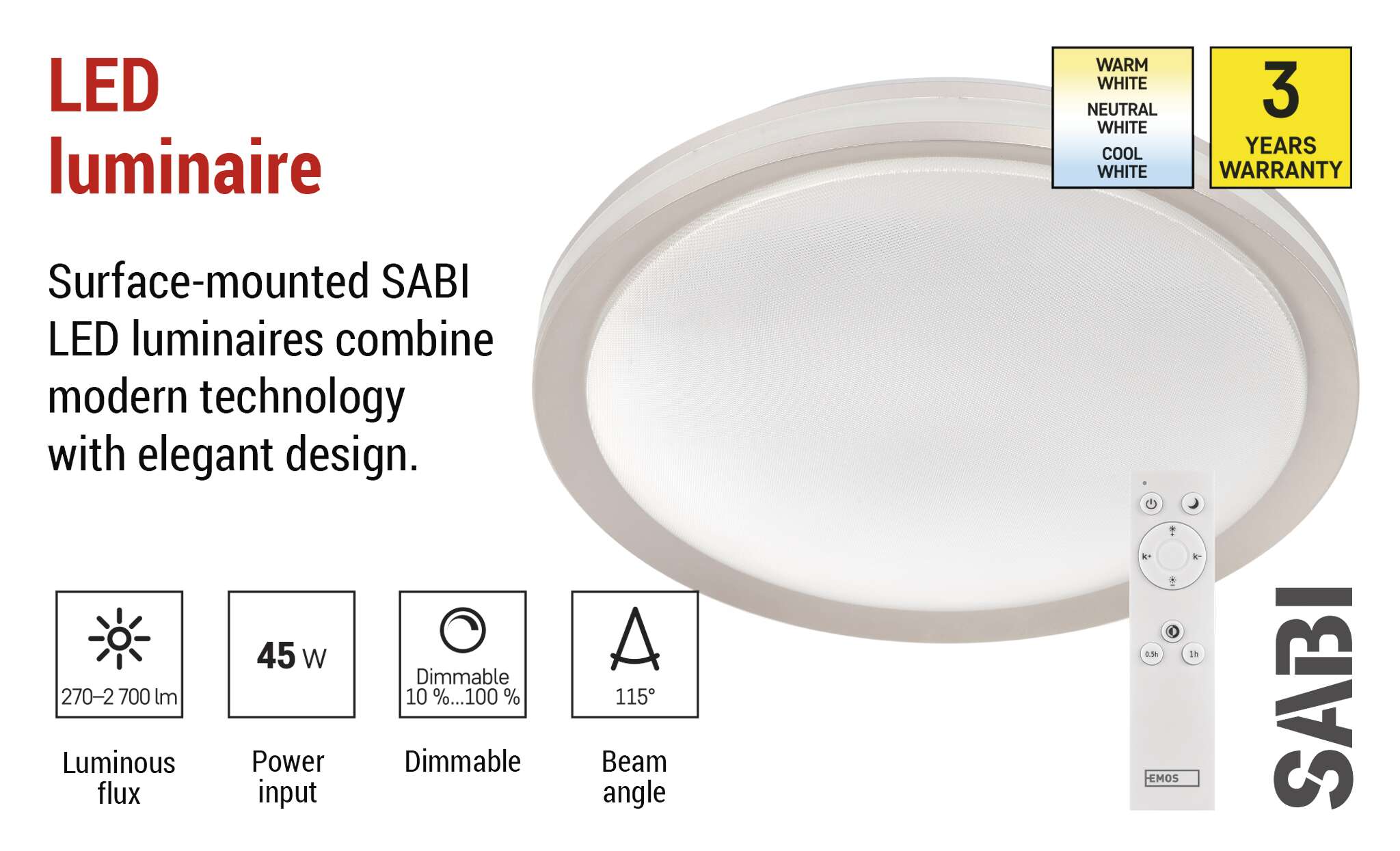 LED lampa SABI, 45 W, silti-auksti balta, aptumšojama ar tālvadības pulti