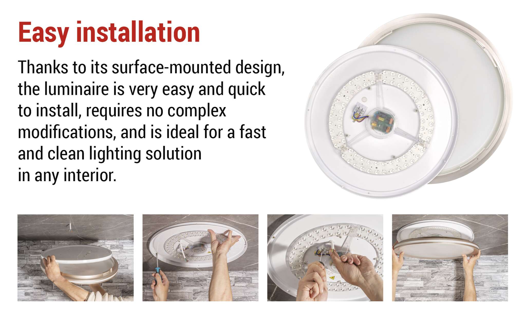 Izstrādājiet gaismekli ar standarta stiprinājumiem, lai nodrošinātu modernu, vienmērīgu un stilīgu interjera apgaismojumu. Šis risinājums ietaupa laiku un enerģiju un ir ideāli piemērots gan jaunām, gan renovētām telpām.