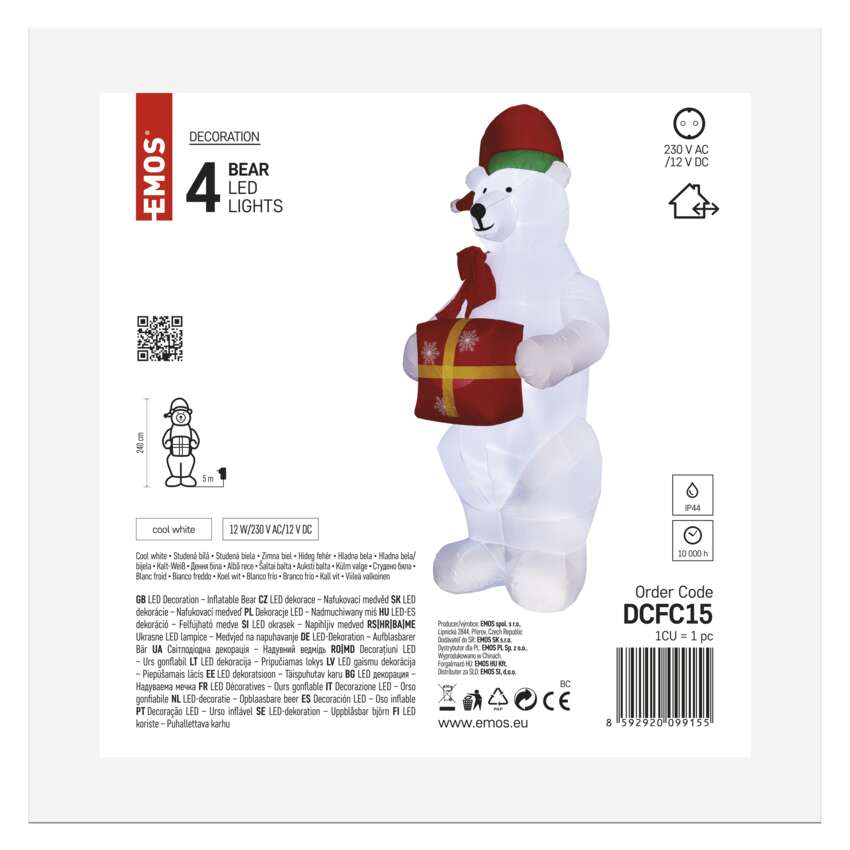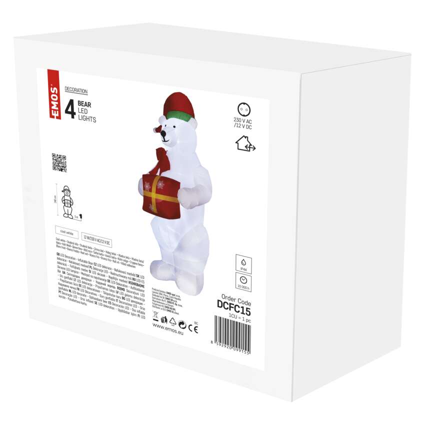 LED polārlācis ar dāvanu, piepūšams, 240 cm, lietošanai ārā un iekštelpās, auksti balts