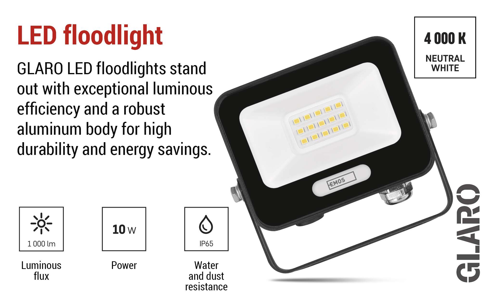 Glaro LED prožektoru klāsts piedāvā uzticamu gaismas izvadi, augstu efektivitāti un ilgu kalpošanas laiku. Pateicoties IP65 aizsardzībai, prožektori ir pilnībā sagatavoti lietošanai ārpus telpām un viegli iztur lietus, putekļus un zemas temperatūras. Izturīgais alumīnija korpuss nodrošina lielisku mehānisko izturību un efektīvu siltuma izkliedi. Tie ir ideāla izvēle mājokļu, dārzu, garāžu un uzņēmumu telpu apgaismošanai. Tie apvieno augstu veiktspēju un pieejamu cenu, tāpēc tos novērtēs ikviens lietotājs.
