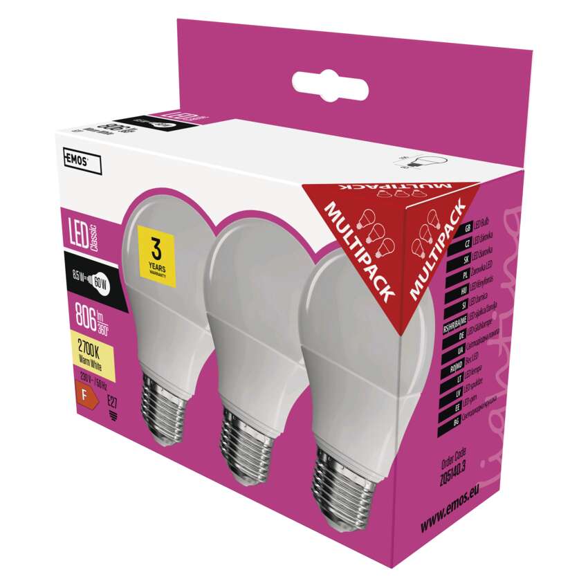 LED spuldze Classic A60 / E27 / 8,5 W (60 W) / 806 lm / silti balta