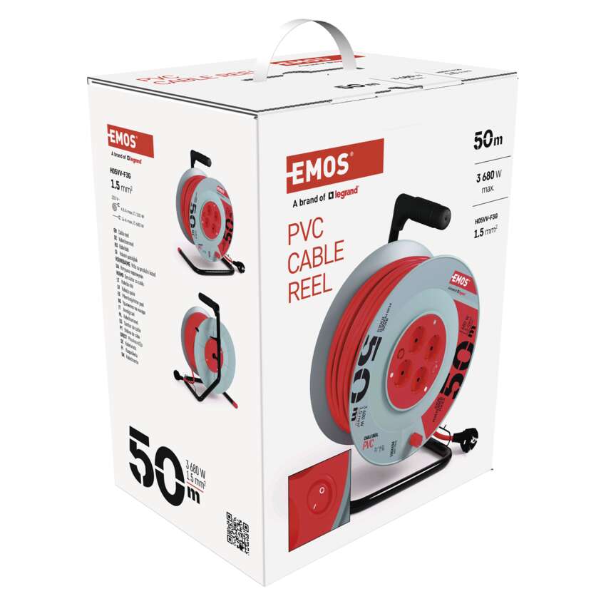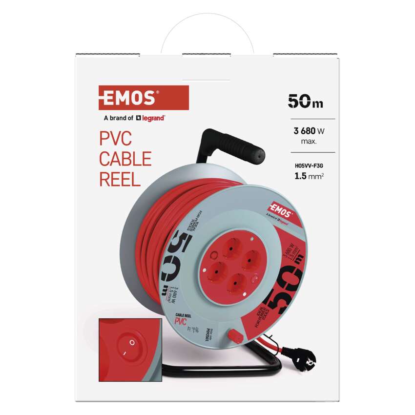 Pagarinātāja spole, 50 m / 4 kontaktligzdas / sarkana / PVH / 230 V / 1,5 mm2