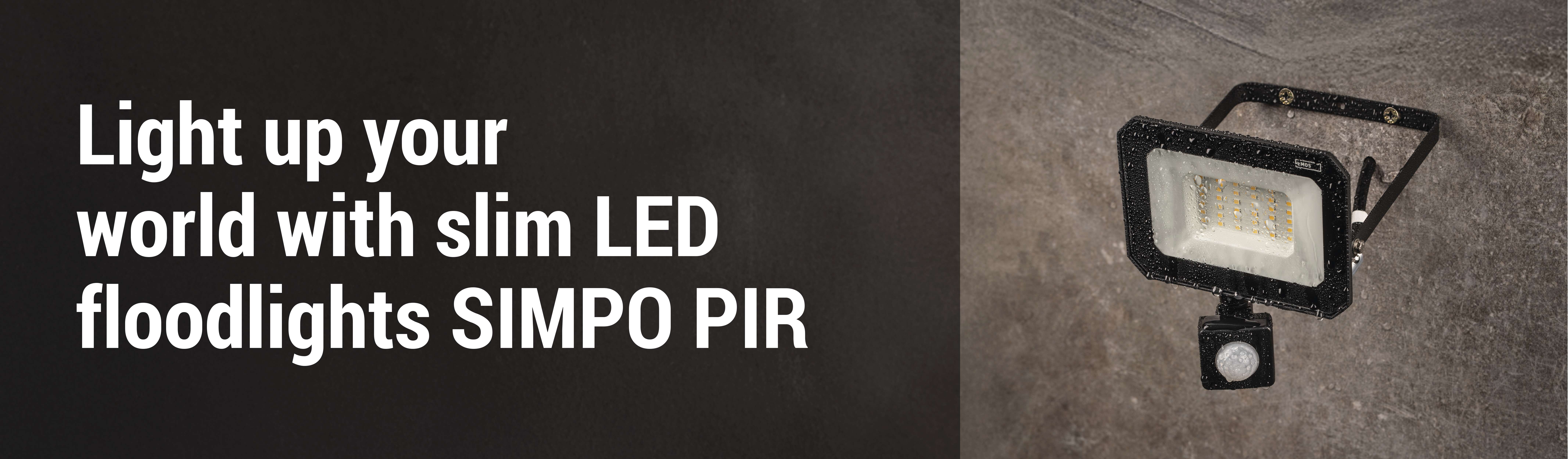 SIMPO prožektoru melnais dizains nodrošina plašu apgaismojuma izvēli. Jūs varat izvēlēties no 4 izmēriem, kas ir tieši proporcionāli izejas jaudai. Turklāt SIMPO piedāvā arī modeļus bez PIR kustības sensora un variantu baltā krāsā.Svarīgākie parametri